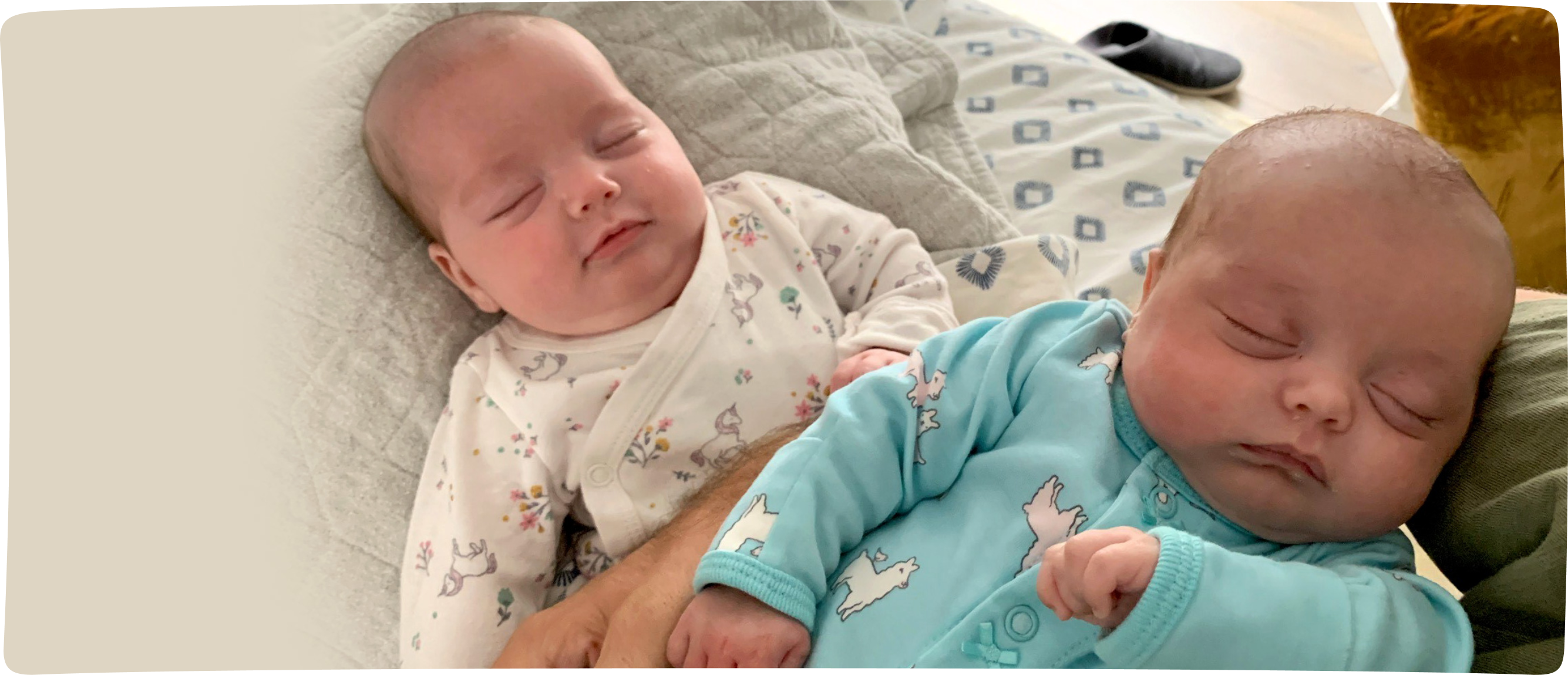 The babies were born 8 weeks early and Chris and Hugh quickly traveled to the east coast to be by their daughters’ sides in the NICU. No matter what, they wanted to be near the girls as they grew stronger every day.